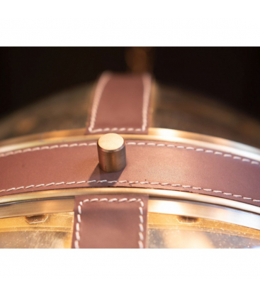 Pouf en cuir patiné & structure laitonnée – Ligne douce et caractère brut