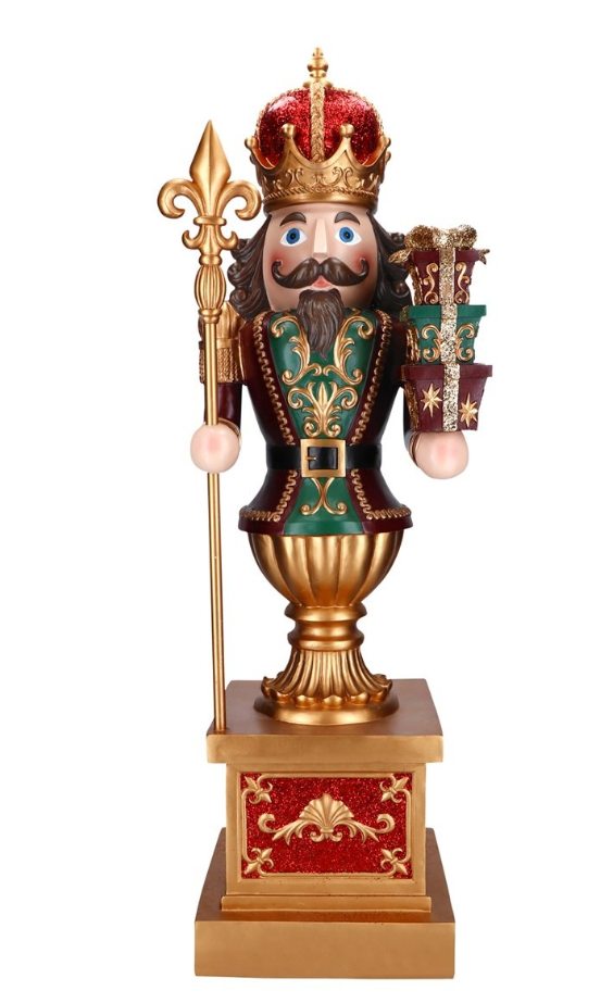 Symbole intemporel des fêtes de fin d’année, ce Casse-Noisette monumental incarne la magie de Noël dans sa plus belle expression.Réalisé en poly résine peinte à la main, il allie robustesse, éclat et raffinement pour sublimer les espaces intérieurs comme les vitrines festives. Caractéristiques Dimensions : 43 × 36,5 ×